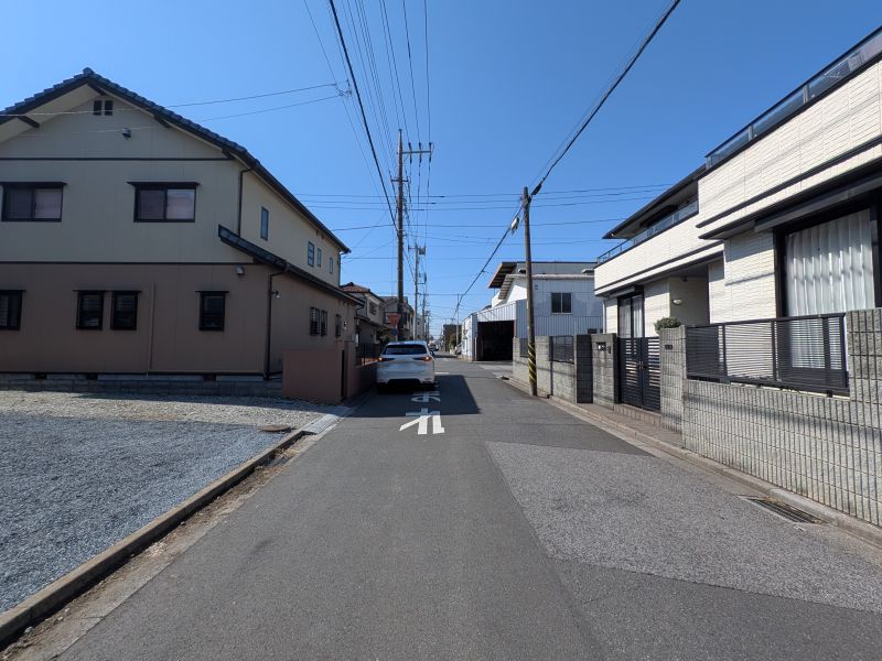 路盤は砕石敷になっており、前面道路は幅員6mの公道と広く、駐車場としての利用でも車両の出し入れがしやすくなっています。