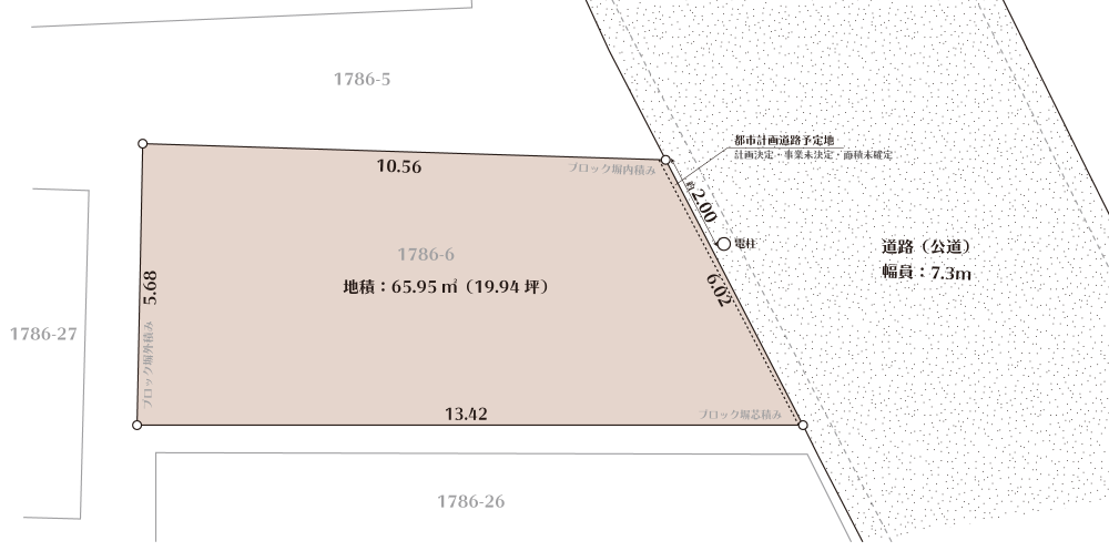 前面道路は幅員7.3mと広く、人通りも活発ですので、店舗併用住宅(1階店舗事務所・2階以上にお住まい)などの事業用地として最適です。